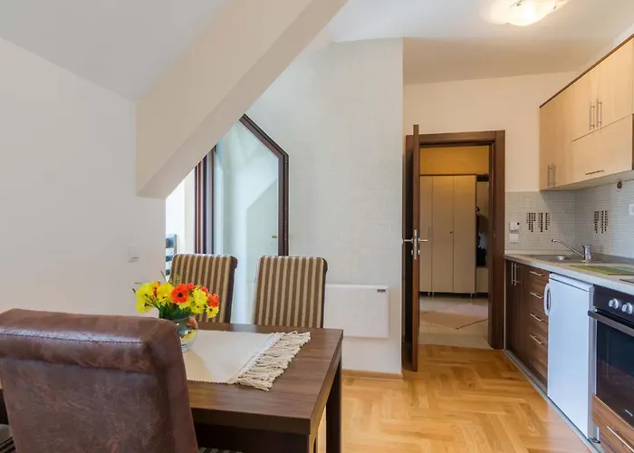 Obiekt jest wyposażony w pełnowymiarową kuchnię z urządzeniami do przygotowywania własnych potraw. Takie popularne restauracje jak Restoran Zlatni Bor i Restaurant Perun są w odległosci 6-minutowego spaceru od obiektu. Stacja kolejki linowej Polazna stanica gondole jest w odległości 10-minutowego spaceru. Obiekt cieszy się popularnością, ponieważ oferuje taras i ogród.